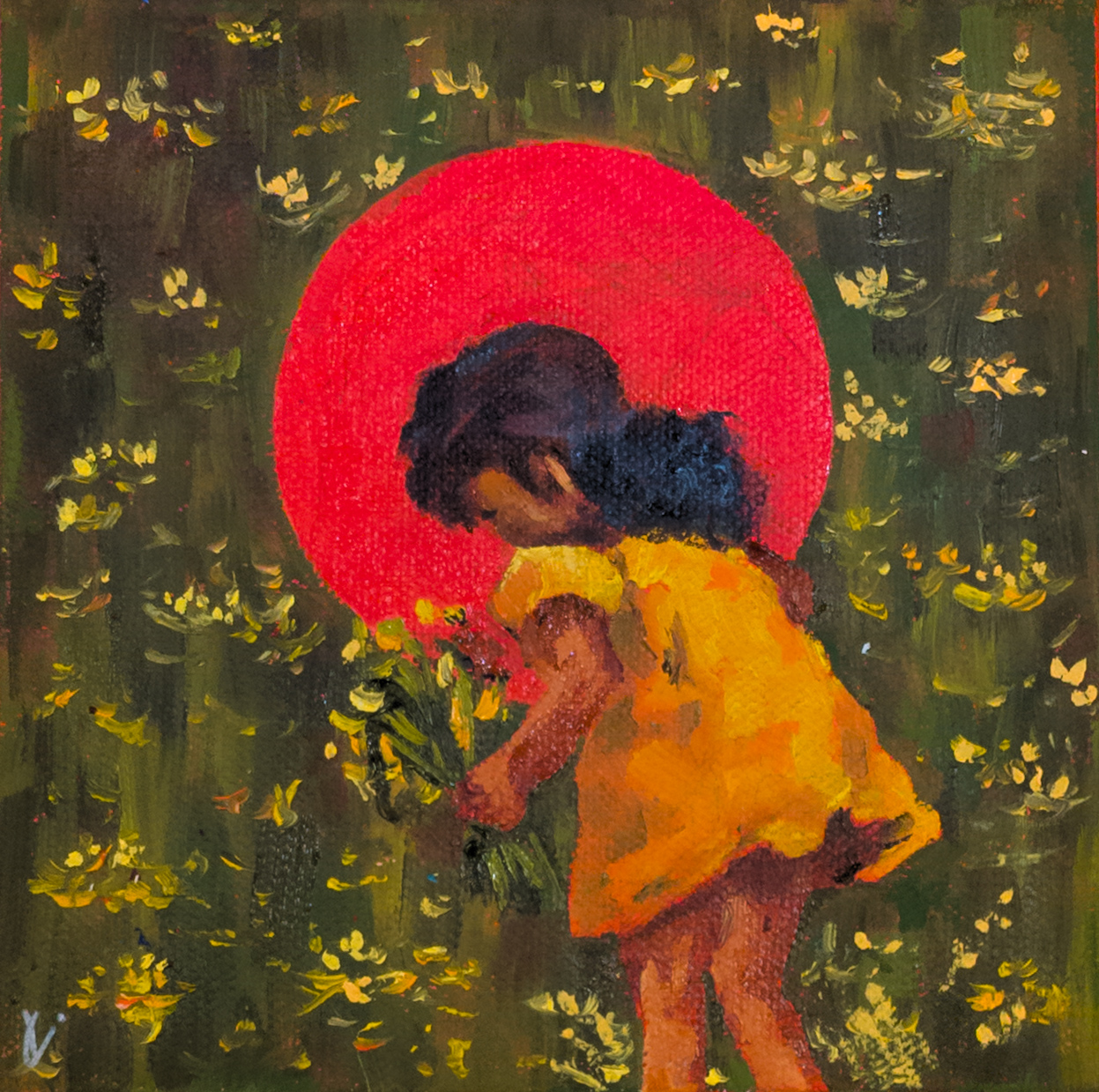 8” x 10”, Oil on Saree Stretched over Canvas Panel